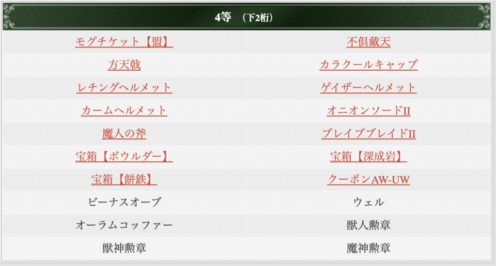 前々回は、4等が1個と5等が10個出てもらったオーブで王将の篭手を引き当てるというミラクルが起こりました。