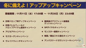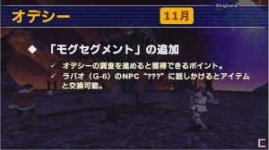 11月9日のもぎヴァナから11月、12月バージョンアップの情報をいくつかピックアップします。