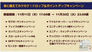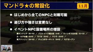 11月16日のもぎヴァナから11月、12月バージョンアップの情報をいくつかピックアップします。
