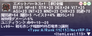 また、剣の敵対心装備に使っているエメットハーネス+1にも手を出しています。