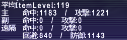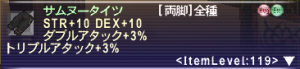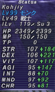 頭脚足を変更しています。STRが少し落ちましたがDEXが大きく伸びています。それに合わせて命中が80くらい上がっています。何よりモクシャ、クリティカルヒット率、トリプルアタック確率の伸びが素晴らしいです。
