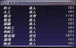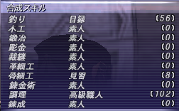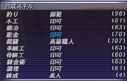 私の金策で使っている合成には、メインキャラでの裁縫(メイン)・鍛冶・彫金があるのですが、倉庫ちゃん達も合成を上げているものがあります。
