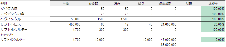 次は、リフトドロスですね。既に持っていた12個を納品して後48個となっています。