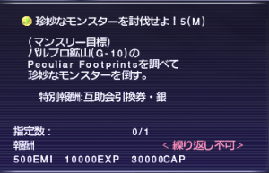 パルブロ鉱山(G-10)のPeculiar Footprintsを調べてAwoken Ariri Samaririを倒す。