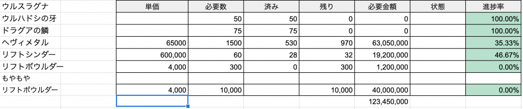 ボウルダー:1249個 が99個で約40万となっているので、1個4000ギルとすると約500万ギル
