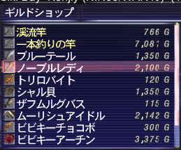 ノーブルレディは、ギルドでの入荷も殆どなくかなり高い値段でビビキー湾漁師ギルドで買うか釣りに行くしかありません。