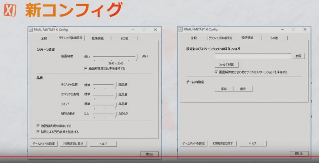 ゲーム内設定で、マクロやMAP情報、ソート順、魔法の並び、ゲーム内コンフィグ、チャットフィルタなどをかき出し、復元できます。全キャラ分まとめて。