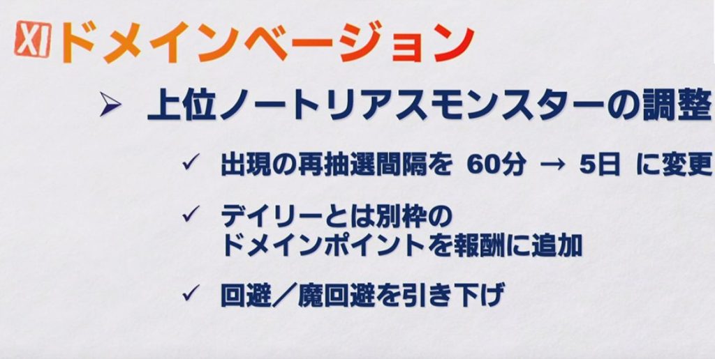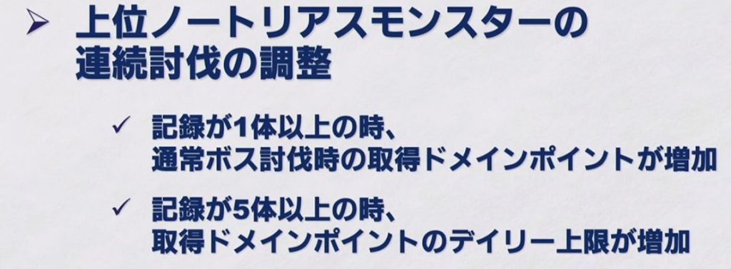 連続討伐してほしいと思って、頻繁に会えるように設定していました。出現期間の変更60分から5日に1回に。ドメインポイントは、別枠が80ポイント分用意されました。