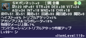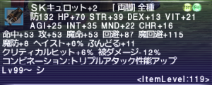 ソーティにシーフで突入してエンピリアン装束の強化が開放されましたので、強化後の性能が見れる様になりました。