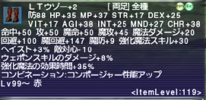 ソーティに赤魔道士で突入してエンピリアン装束の強化が開放されましたので、強化後の性能が見れる様になりました。