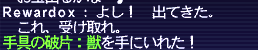 前回は全くでなかった破片がドロップしました。獣なので高くはなさそうです…。履歴の最新は20万がついていましたが、平均は10万くらいのようです。