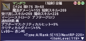 マンダウもちょっとだけ強くなっていっています。Rank5になりました!一番育ってる武器になっています。