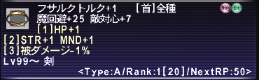 後、奮発してフサルクトルク+1を買いました。本当は+2が欲しかったのですが、お金が足りずに+1で妥協することに…