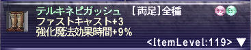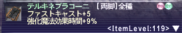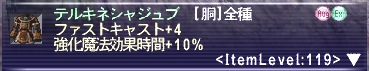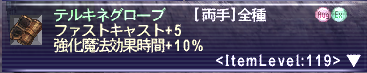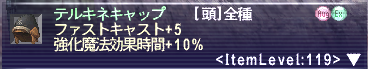 後衛の強化魔法効果時間アップについて考えるの記事で、テルキネ装備をゲットし直していました。