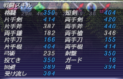 スキル上げ前の数値は、こんな感じです。(後ろが透けてしまった)