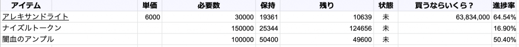 アレキは、アンバスを中心にしててホールマークとガラントリーでもらったものを納品しています。8割くらい納めたら他も進める予定です。