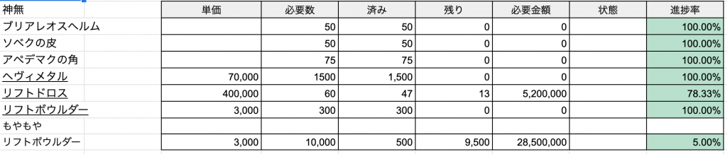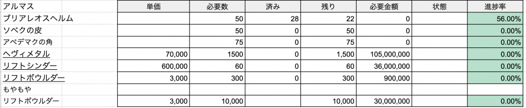サブとして優秀なためそのまま作成中です。アンバスで集めたホールマークとガラントリーをリフトドロスに交換して納品してます。リフトボウルダーの箇所は更新してませんが大箱200個くらい溜まっているのでかなり進んでいると思います。