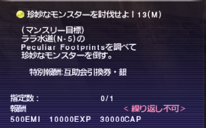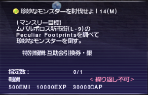 ムバルポロス新市街(L-9)のPeculiar Footprintsを調べてAwoken Andhrimnirを倒す。