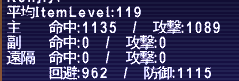 命中がやっと1100超えて大きくアップ、トゥルムレギンス+1に変えたことで回避と魔回避が大きく伸びています。