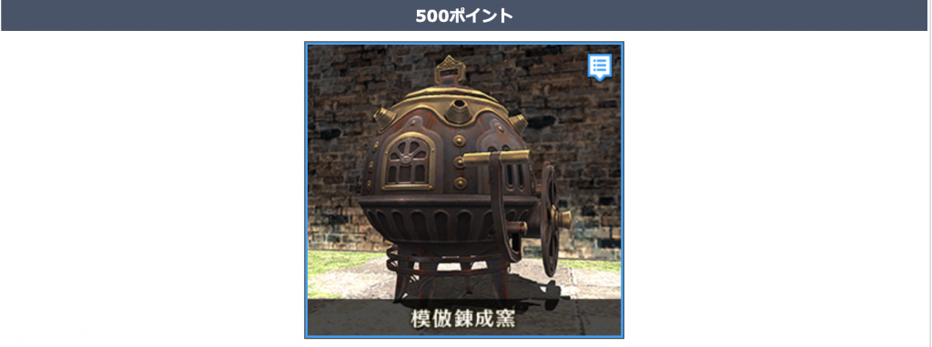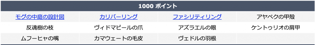 次は、こちら1000ポイントからエスカ-ル・オンのギアスフェットNM(第2段階)を沸かすためのアイテムになります。金策としてお金に変えても良いのですが単価が安いので1000ポイント使うことから考えると効率は悪いですね。一応、Asuraでの単品の価格を出しておきます。