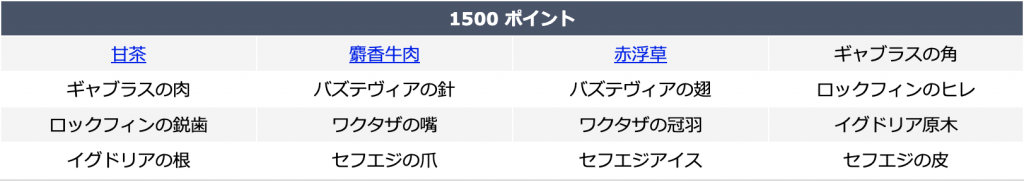 今回の1500ポイントは、メナスインスペクターからの素材になりますね。装備品の合成にも使うようになりましたので安定した需要が見込まれます。