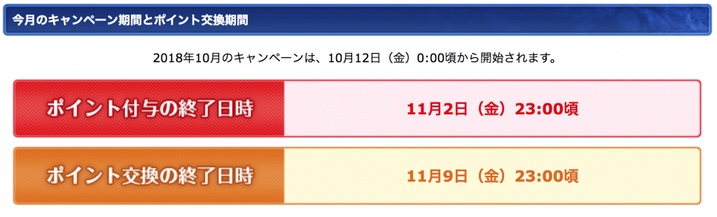 キャンペーンの期間はこのようになっています。いつも最後にバタバタやってます…