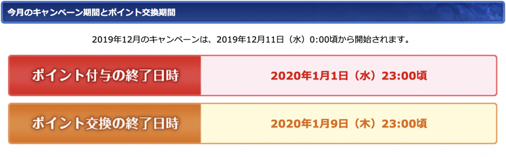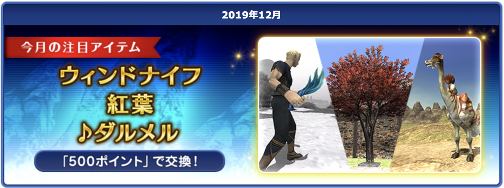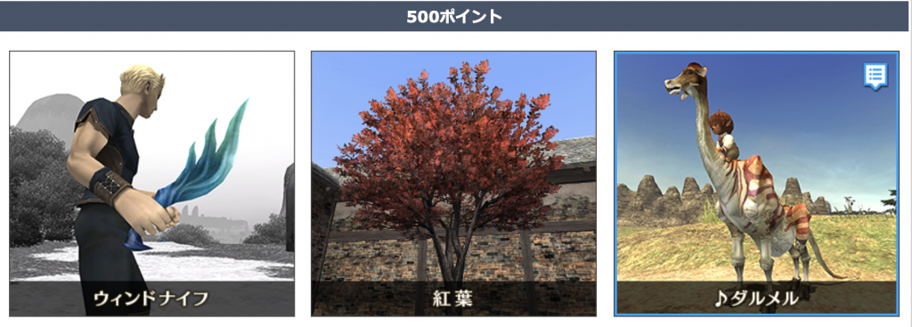 いつもより配布期間が短いですね。その分なのか年末キャンペーンなのか500ポイント以外の各アイテムの消費ポイントが半分になっています。