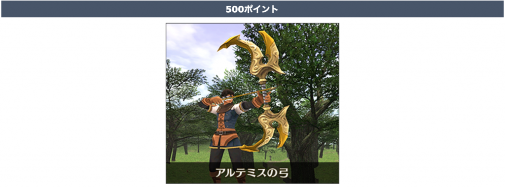 500ポイントで取得できる「アルテミスの弓」です。ごっついしかっこいいですねw