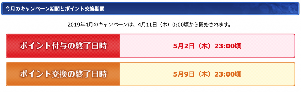 3月のロインポイントの交換が4/9 23:00までとなっています。忘れずに消費してくださいね!