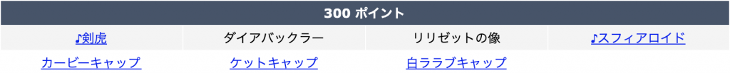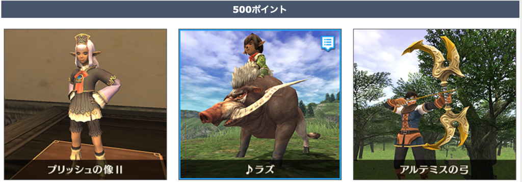 500ポイントで取得できるものは全て復刻版ですね。まだ持っていない人はこの機会に手に入れましょう!