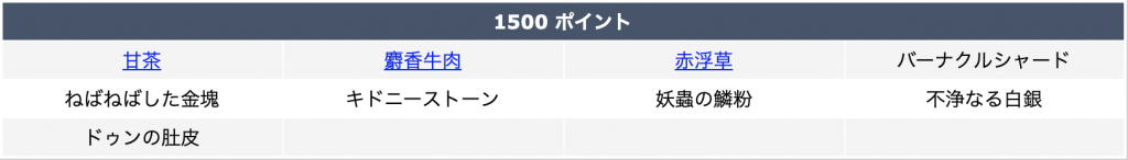 そして今回の目玉となるのは、1500からアビセアンNMからのドロップ品で呪い装備の作成に必要になる素材が交換品となっています。