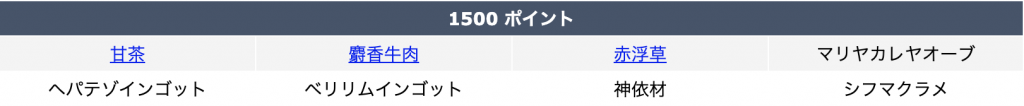 そして今回の目玉となるのは、1500からアーティファクトの強化素材が初登場しています。