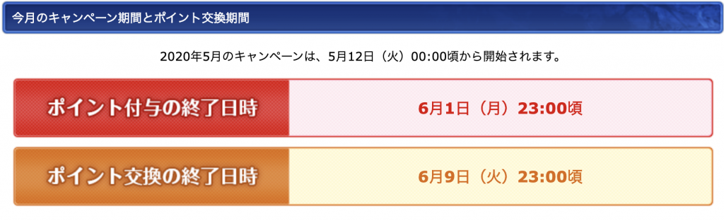 ロインポイントの交換が5/9 23:00までとなっています。交換忘れがないように気をつけましょう!
