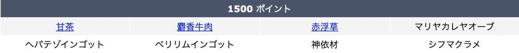 今回の1500ポイントは、AF119への打ち直しなどに使える素材が入っていました。Asura鯖での相場(2020/05)を載せておきます。