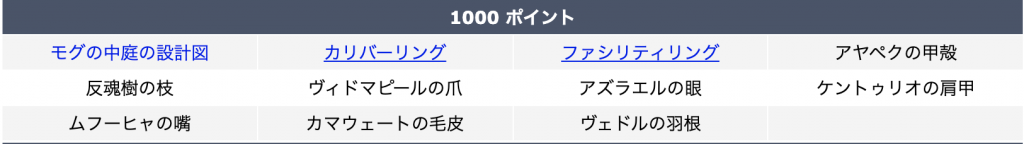 次は、こちら1000ポイントからエスカ-ル・オンのギアスフェットNM(第2段階)を沸かすためのアイテムになります。金策としてお金に変えても良いのですが単価が安いので1000ポイント使うことから考えると効率は悪いですね。一応、Asuraでの単品の価格を出しておきます。