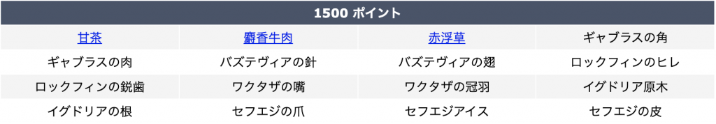 今回の1500ポイントは、メナスインスペクターからの素材になりますね。装備品の合成にも使うようになりましたので安定した需要が見込まれます。