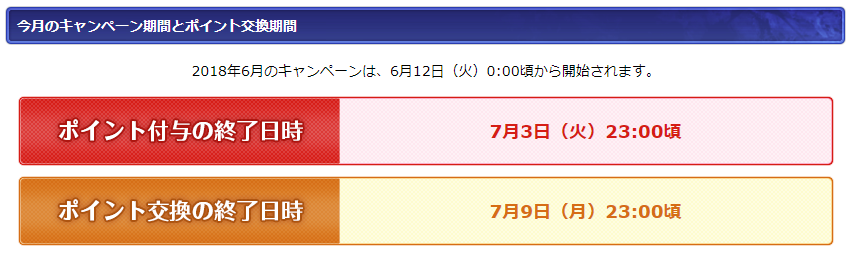 キャンペーンの期間はこのようになっています。いつも最後にバタバタやってます…