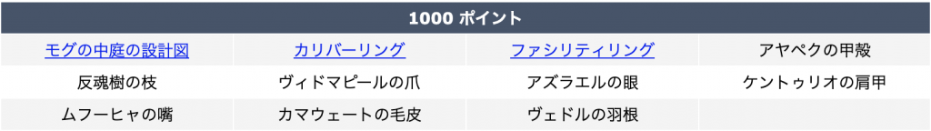次は、こちら1000ポイントからエスカ-ル・オンのギアスフェットNM(第2段階)を沸かすためのアイテムになります。金策としてお金に変えても良いのですが単価が安いので1000ポイント使うことから考えると効率は悪いですね。一応、Asuraでの単品の価格を出しておきます。