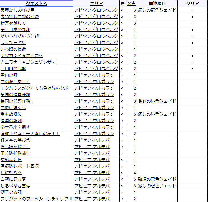 以前公開した「FF11お役立ちシート」にアビセアクエストシートを追加しました。